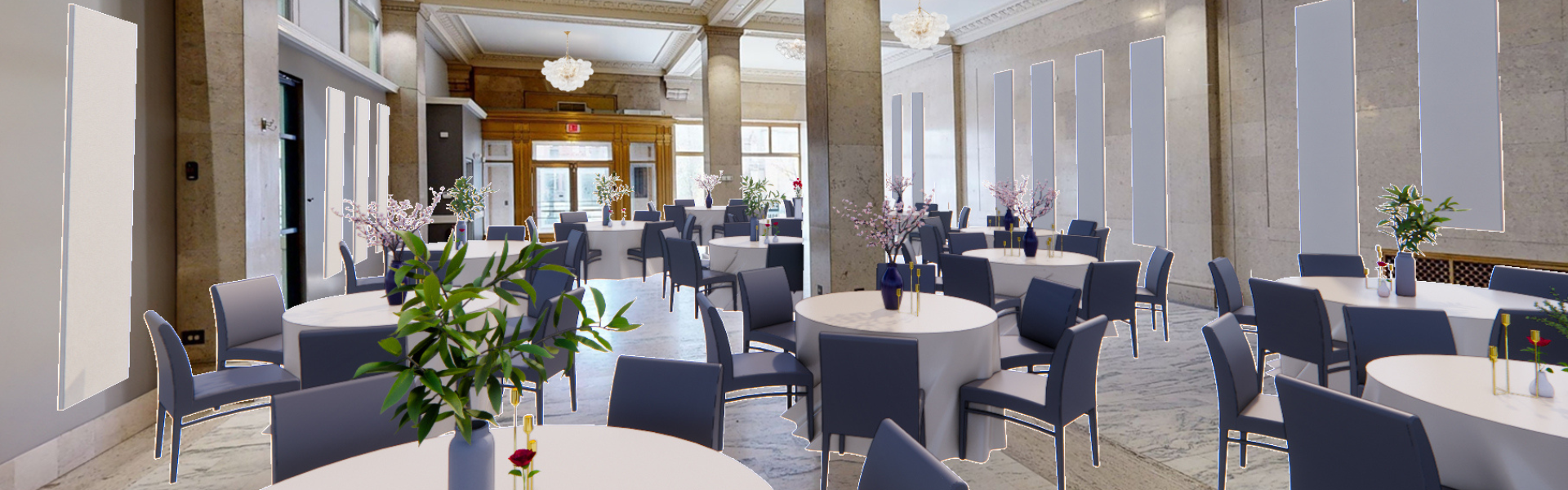 Grand Historic Ballroom - Designed for small, elegant galas, staff retreats and weddings, ensuring every occasion is unforgettable.